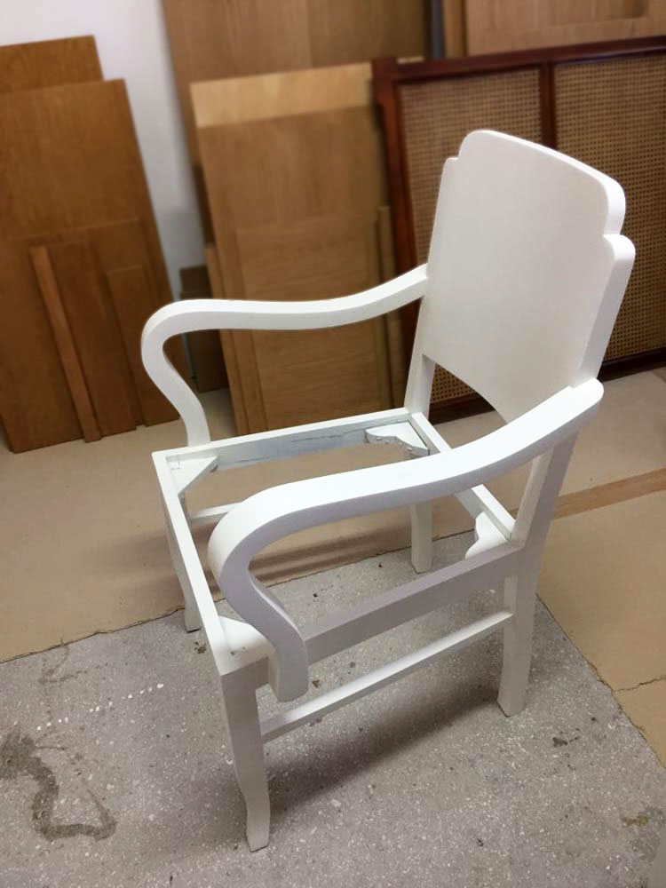 Αναπαλαίωση επίπλων : αναπαλαίωση σε καρεκλοπολυθρόνες και μπουφέ. Στα έπιπλα έγινε αποκατάσταση φθορών και στη συνέχεια βαφή λάκας ματ χρώματος ivoire.