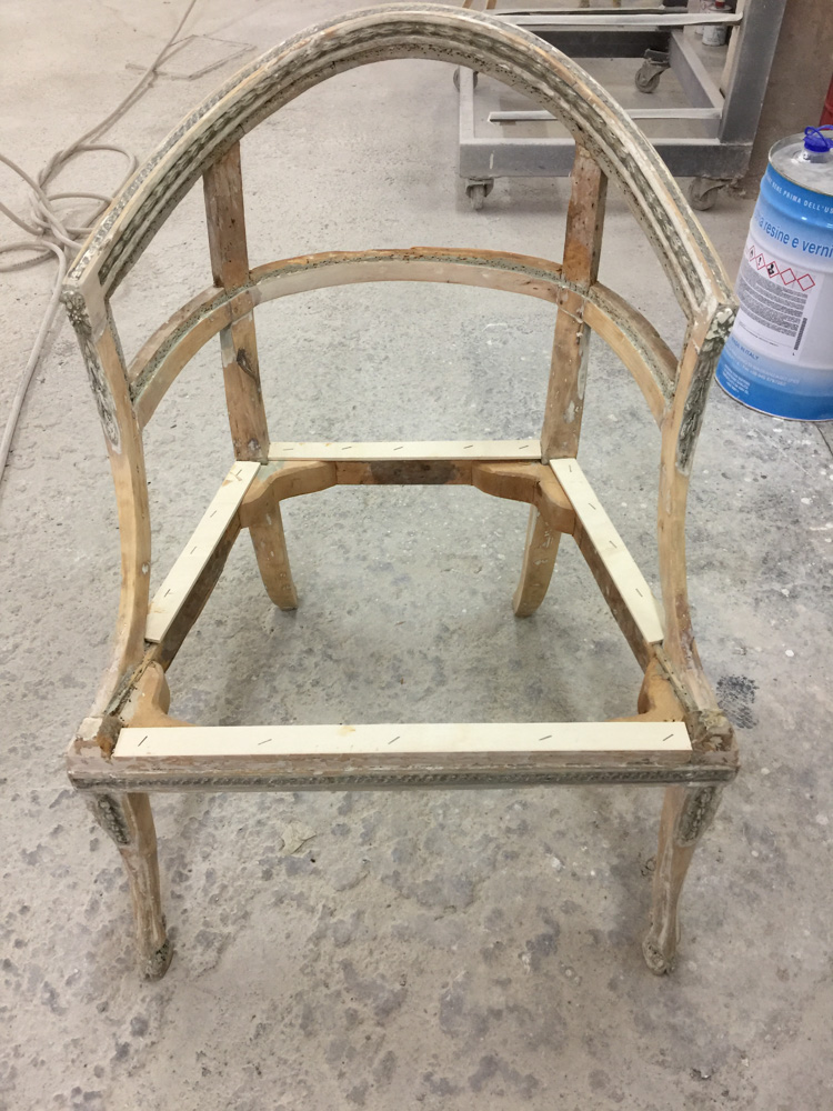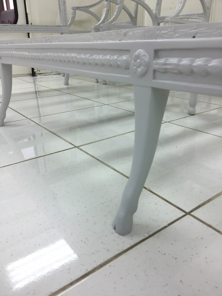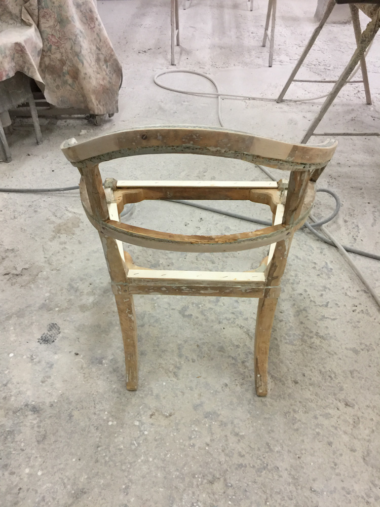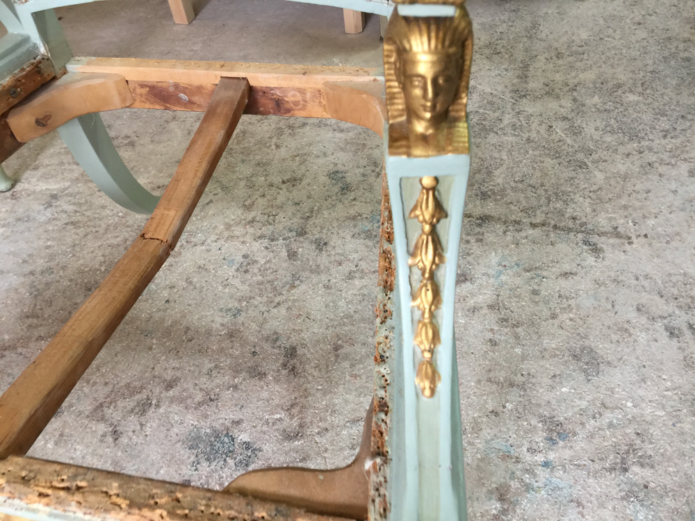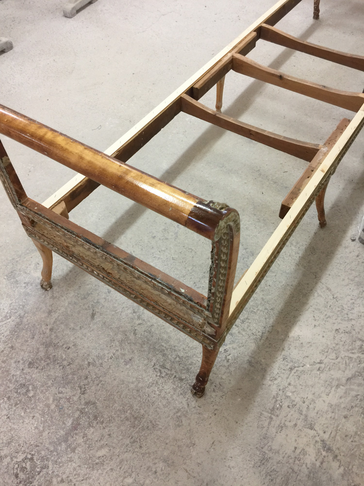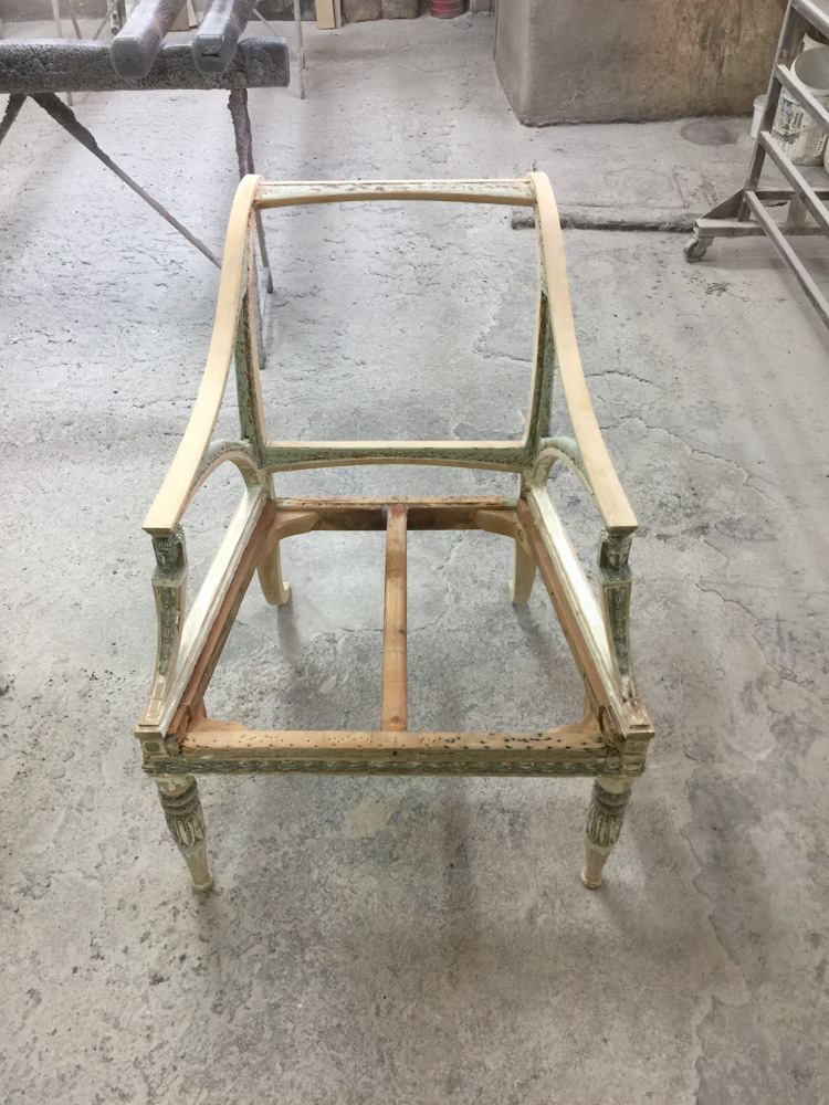 Αναπαλαίωση επίπλων πρεσβείας: καρεκλοπολυθρόνες, ντιβάνι, ταμπουρέ. Αποκατάσταση φθορών και βαφή σε λάκα RAL (χρώμα επιλογής του πελάτη) με λεπτομέρειες χρυσού χρώματος.