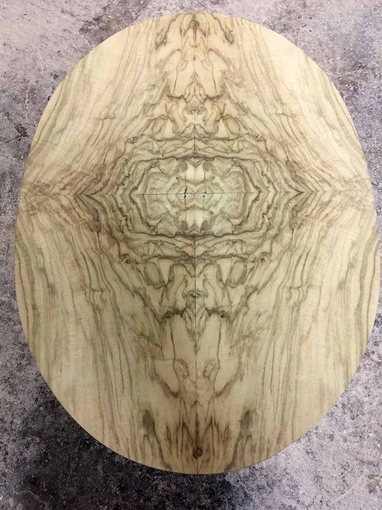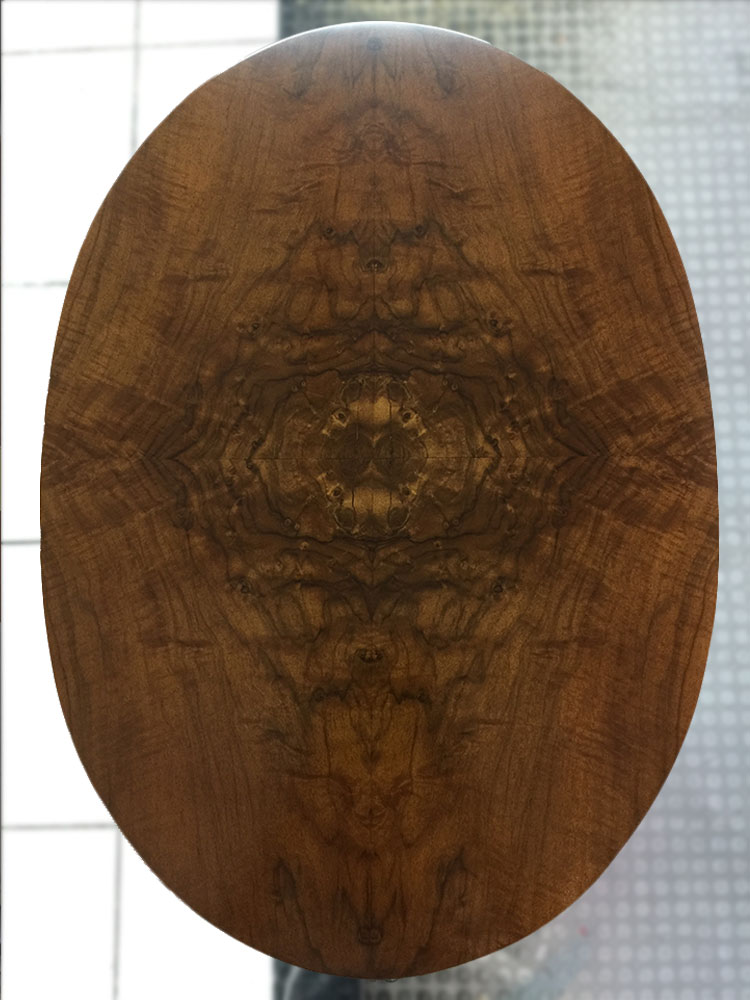 1. Στην επιφάνεια από ρίζα καρυδιάς εφαρμόστηκε λούστρο βερνίκι σατινέ.