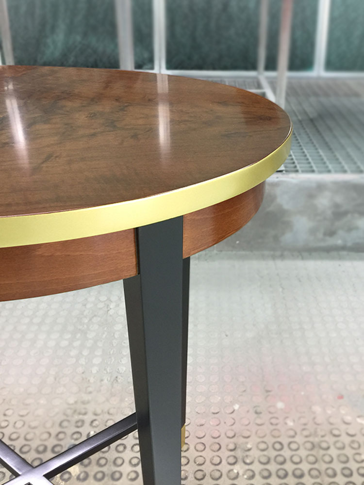 Βαφή ξύλινου τραπεζιού. Στο έπιπλο εφαρμόστηκαν τρεις διαφορετικές βαφές: λούστρο, λάκα χρυσή και λάκα μαύρη.