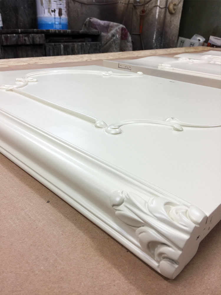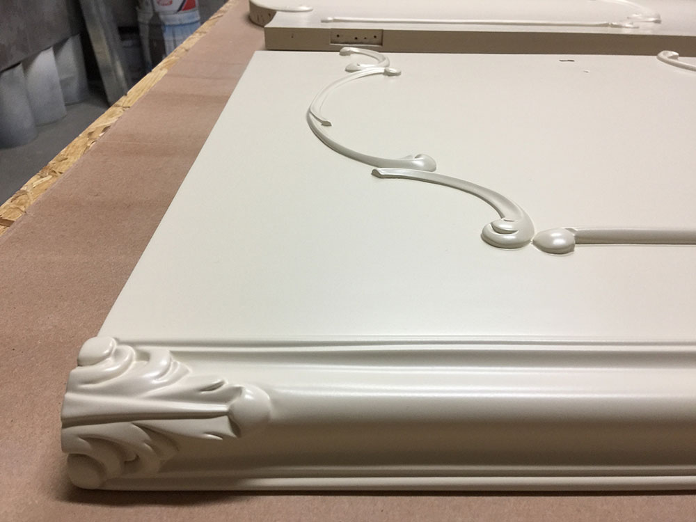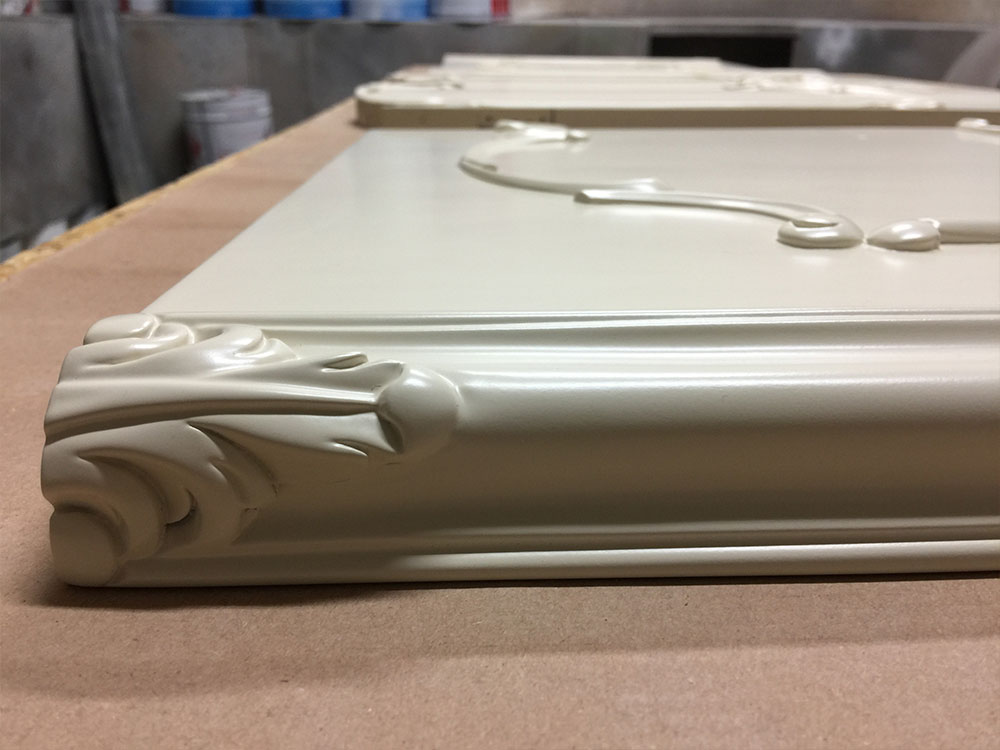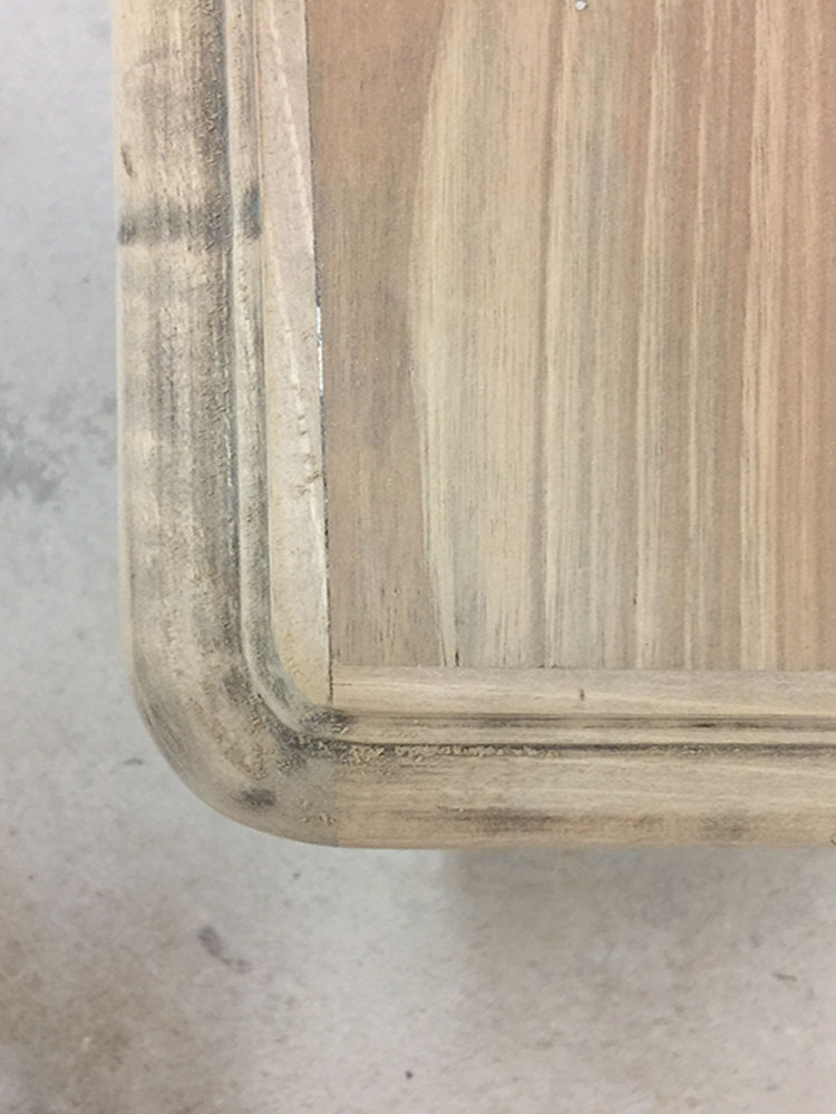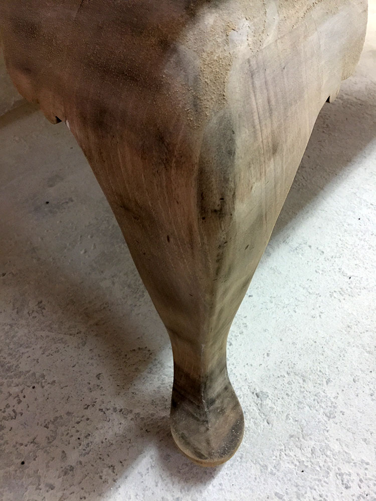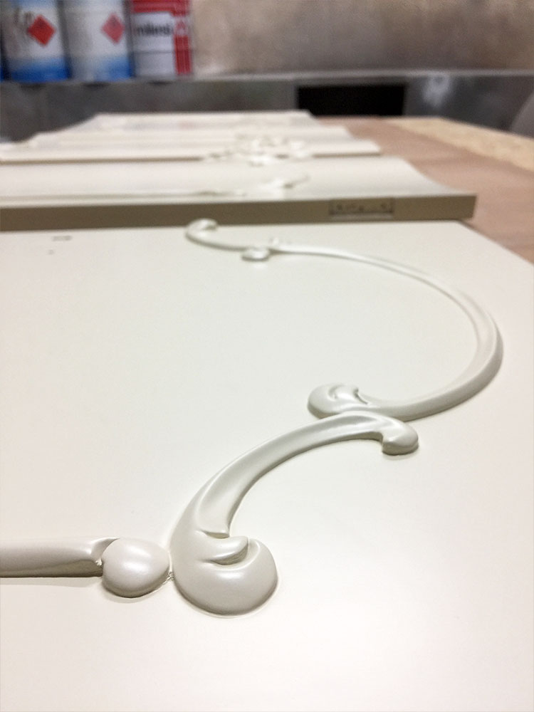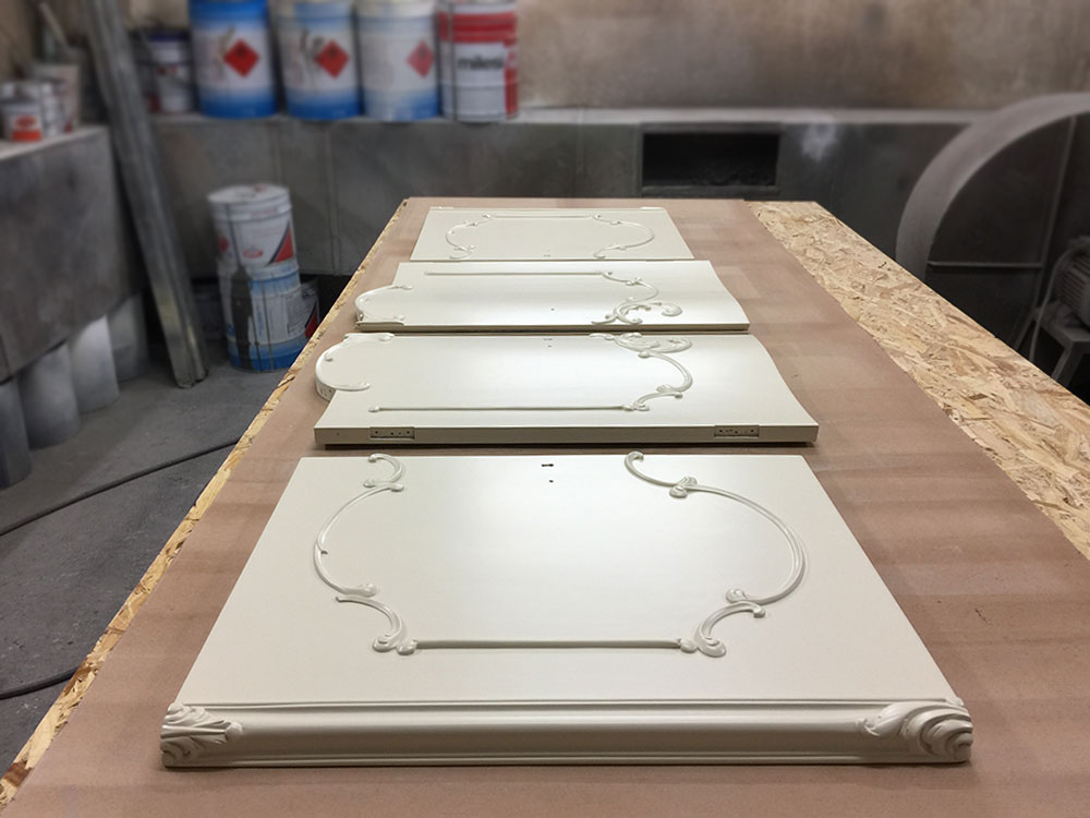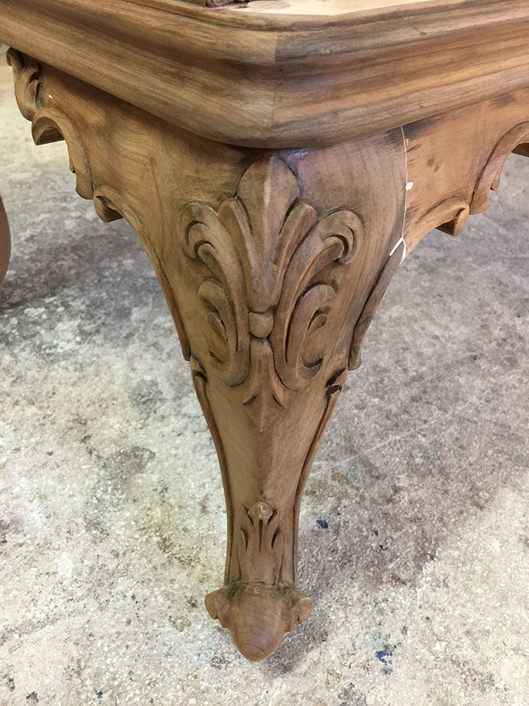 Τα έπιπλα κατά την αναπαλαίωση αρχικά τρίβονται, ώστε να απομακρυνθεί το παλιό βερνίκι και επιδιορθώνονται τυχόν φθορές. Έγινε, επίσης, αποκατασταση μπορντουρας στα πορτάκια του μπουφέ.