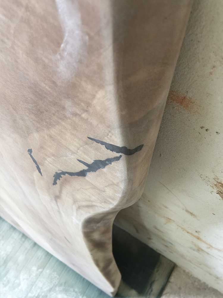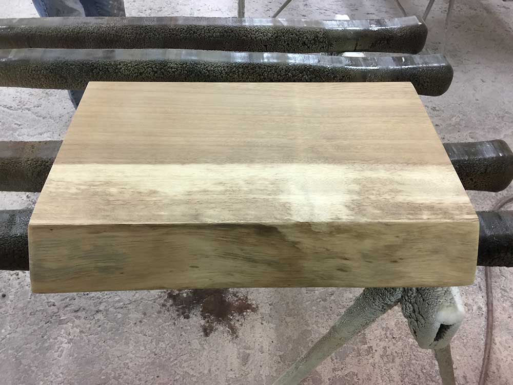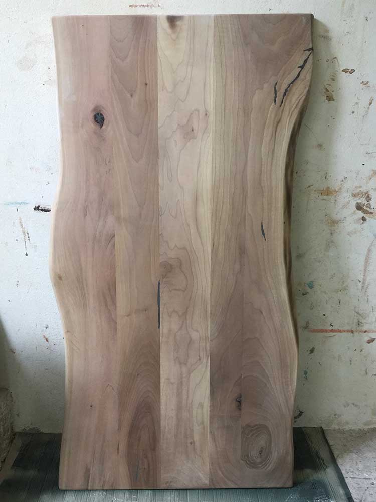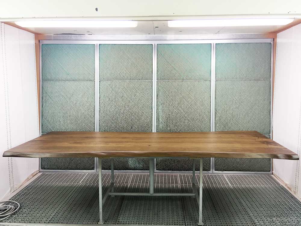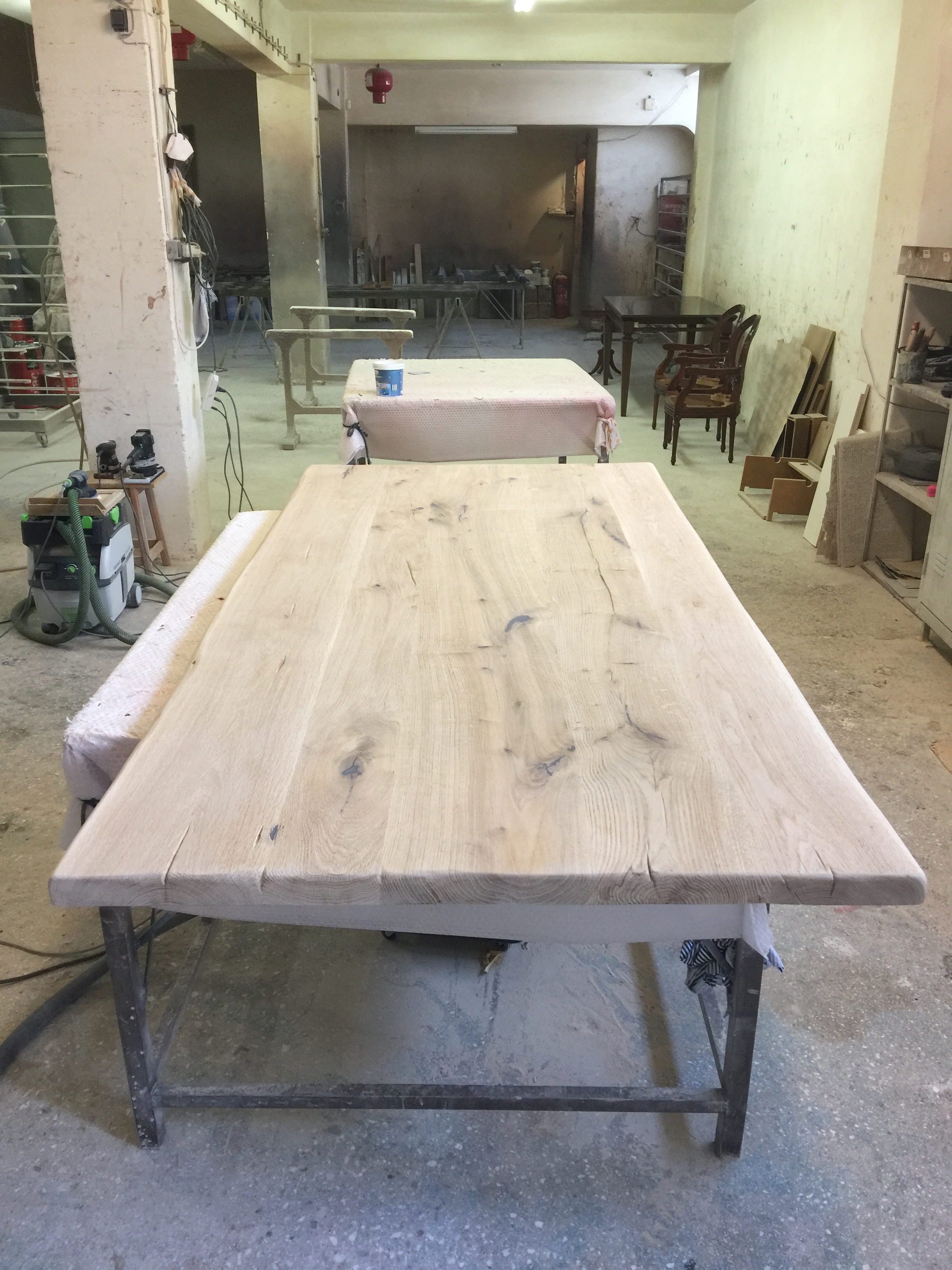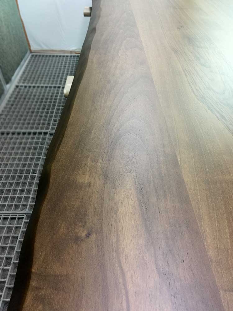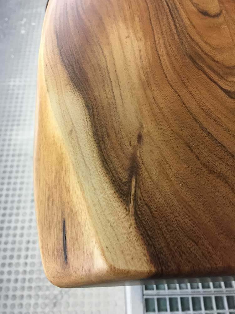 Βαφή λούστρο με ακρυλικό βερνίκι διάφανο ματ σε μασίφ επιφάνειες καρυδιάς, ιρόκο και ακακίας και βαφή λούστρο με ακρυλικό βερνίκι ματ χρώμα επιλογής πελάτη σε μασίφ επιφάνεια δρυός ρουστίκ.