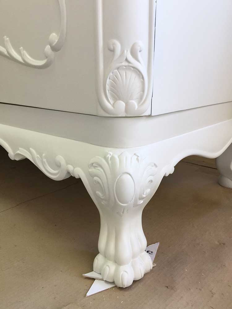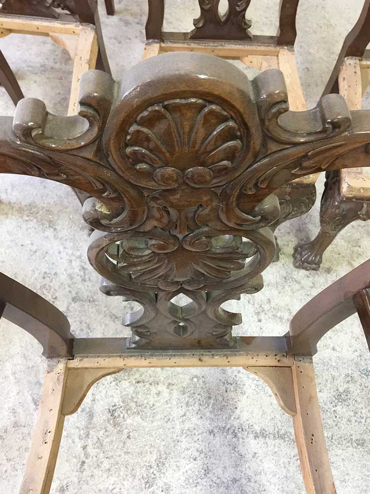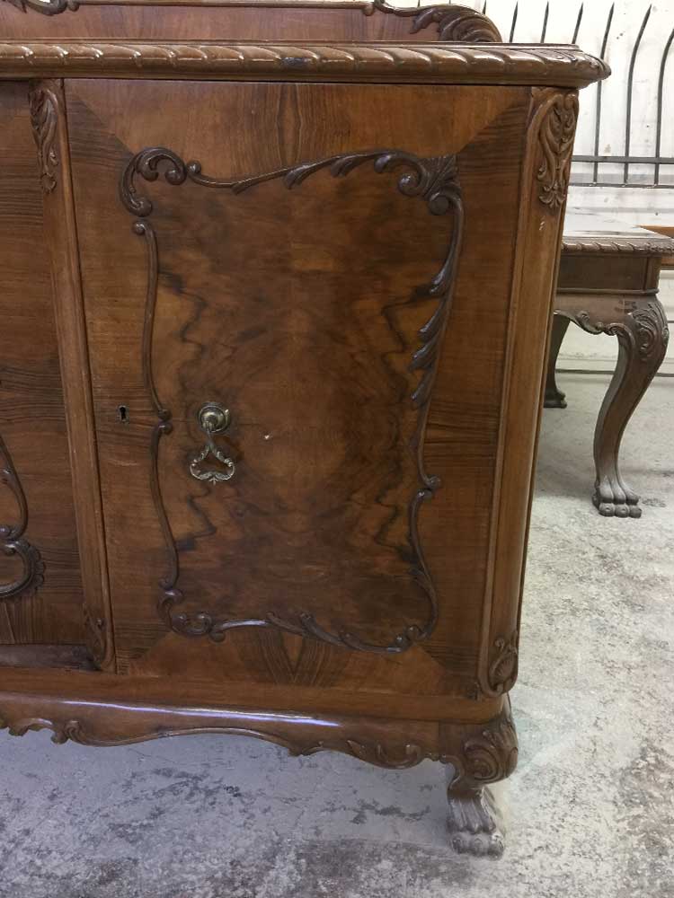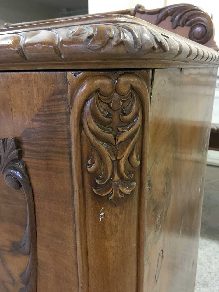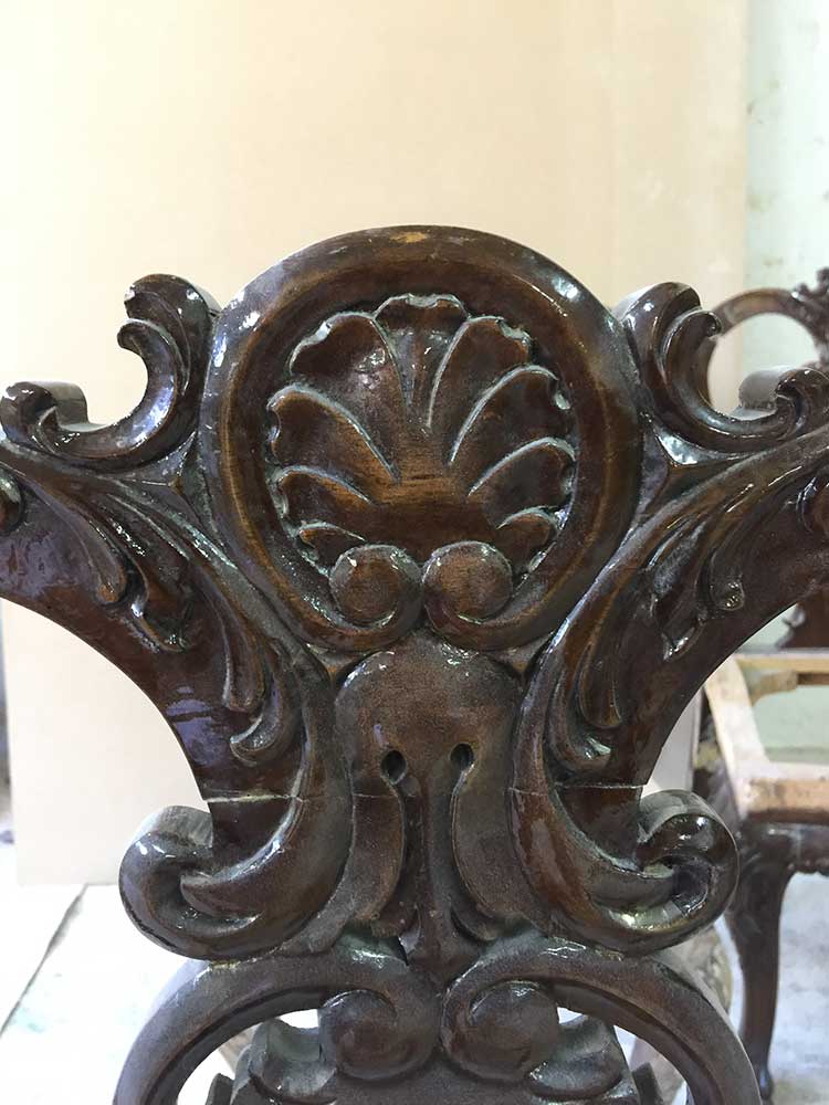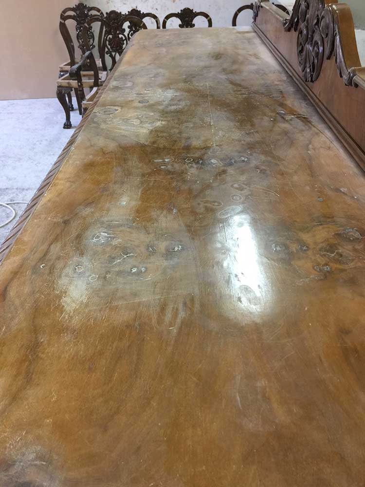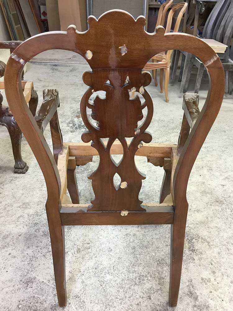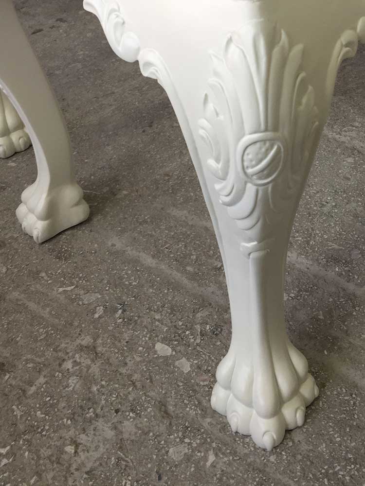 Αναπαλαίωση σε ξύλινες καρέκλες τραπέζαρία και μπουφέ: βαφή λάκας σε χρώμα επιλογής πελάτη και βαφή με λούστρο σατινέ στο καπάκι μπουφέ και τραπεζαρίας