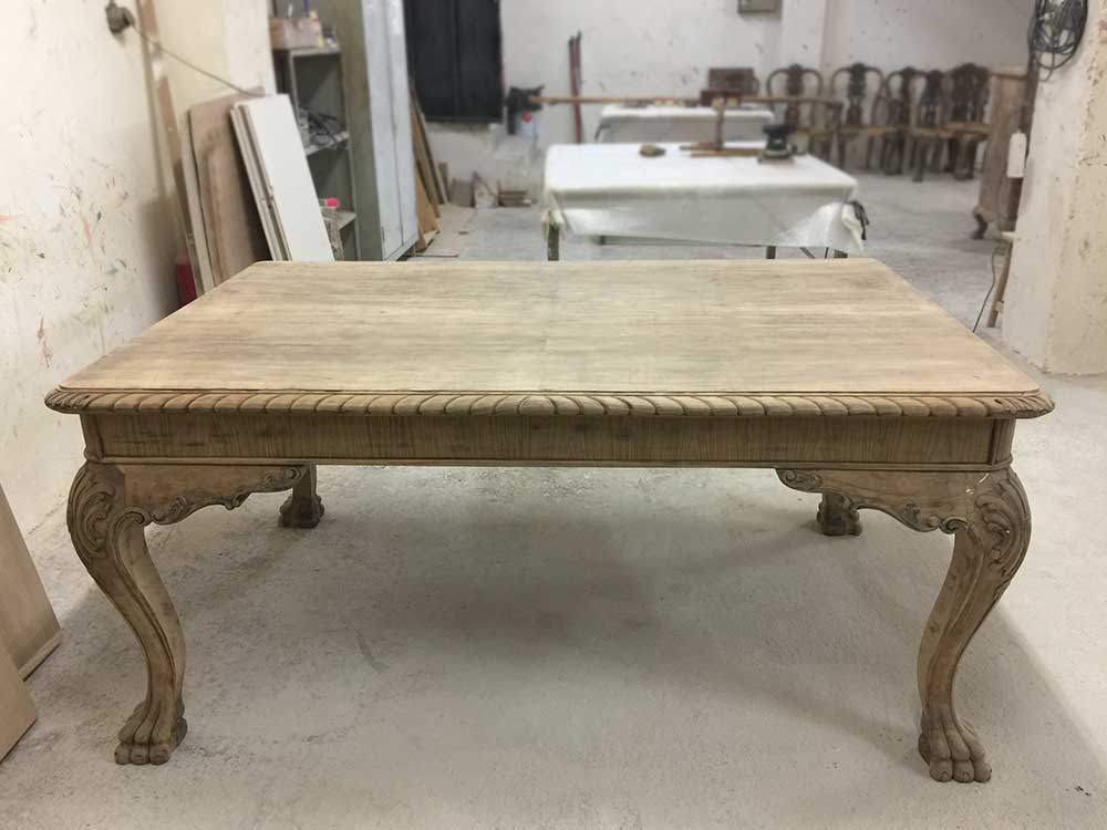 Η τραπεζαρία μετά την προεργασία (αφαίρεση παλιού χρώματος και τρίψιμο) και πριν τη βαφή.
